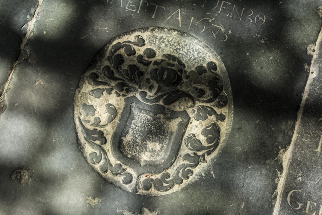 Sommige grafstenen dragen rijkversierde wapens, maar in de Franse tijd zijn de schilden daarvan weggehakt. ‘Gelijkheid’ was namelijk het motto van de toenmalige heersers. Hun afkeer van de aristocratie en adel toonden ze met de verwijdering van alle wapenschilden en familiewapens. Zelfs de grafzerken moesten het daarbij ontgelden.