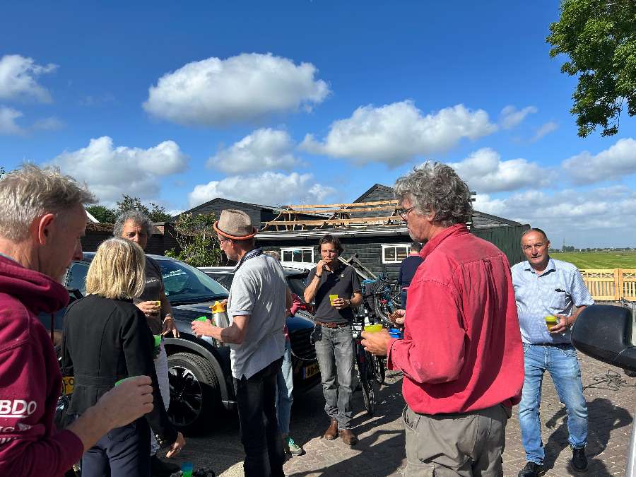 Over de helft in het opknapproces en de schuur staat er al heel goed bij. Mooi samenspel van tientallen even ervaren als eigenzinnige klussers. En het biertje na afloop op het zonnige kerkterras is ook niet verkeerd.